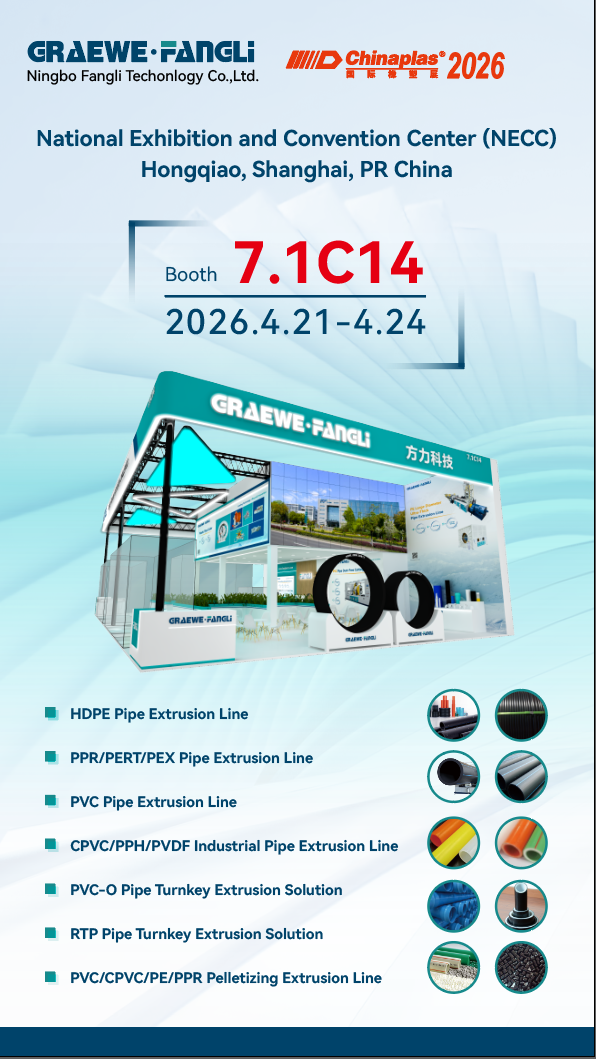 मराठी चाइनाप्लास 2026 में हमारे बूथ 7.1सी14 में आपका स्वागत है,निंगबो फैंगली टेक्नोलॉजी कंपनी लिमिटेड(इसके बाद इसे "फैंगली" कहा गया है) अनुसंधान एवं विकास, उत्पादन और बिक्री में माहिर हैप्लास्टिक बाहर निकालना उपकरण, नई पर्यावरण संरक्षण उत्पादन लाइनें, प्लास्टिक पाइप वेल्डिंग मशीनरी और प्लास्टिक सहायक मशीनरी।